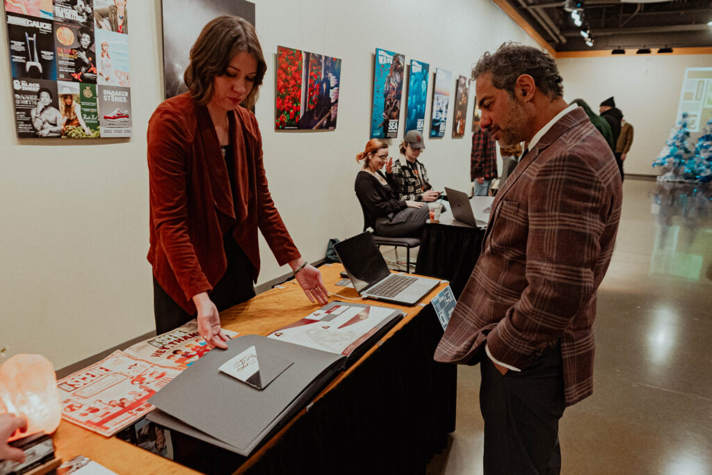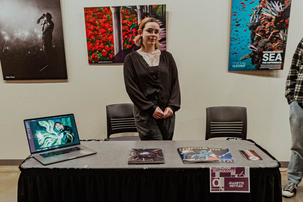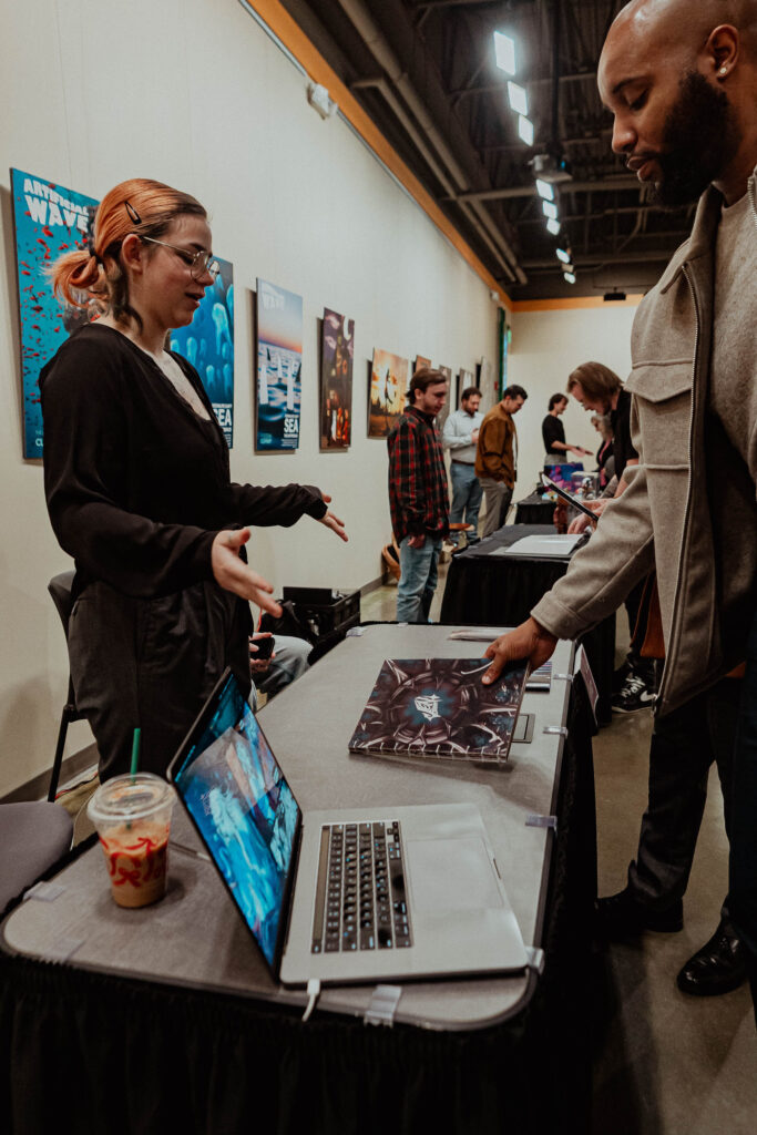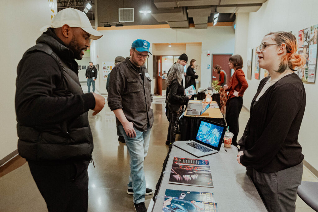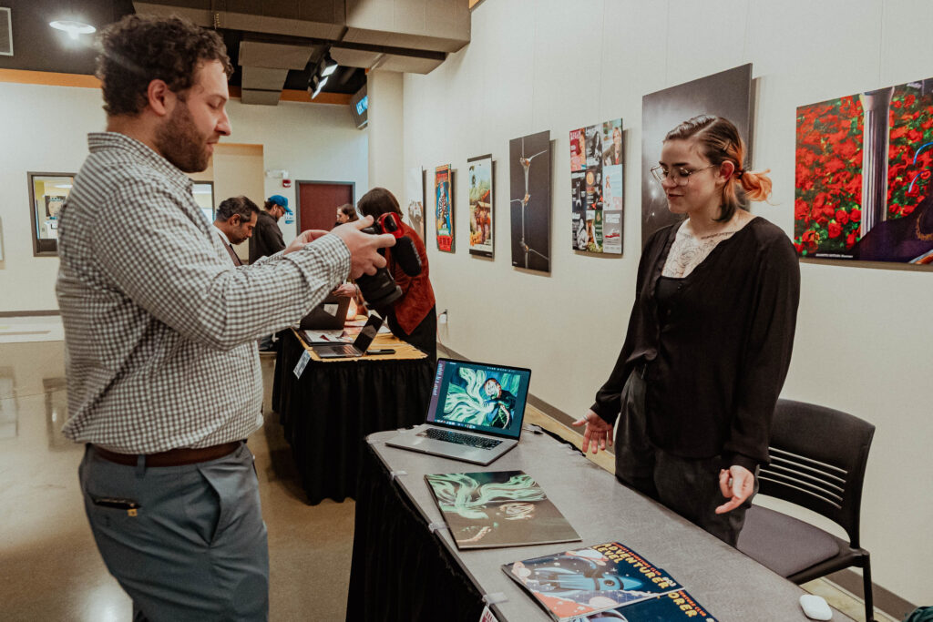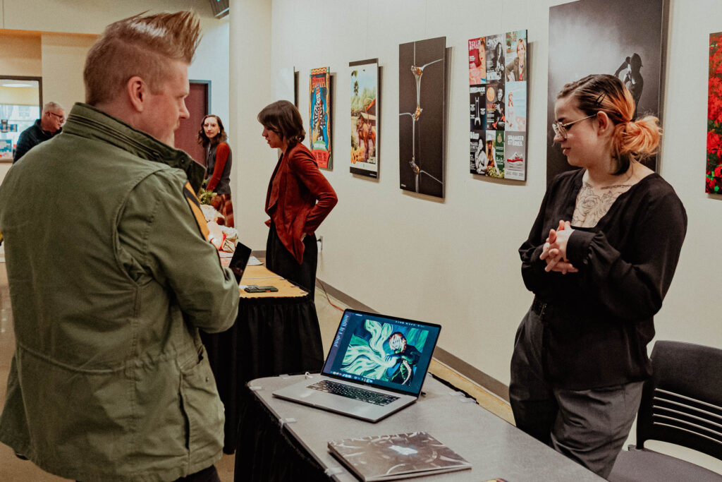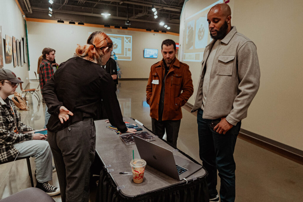 That journey culminated on Thursday, December 11, 2025 during the Fall 2025 Senior Exhibition, where students presented their final projects to creative professionals, family, and friends. The event welcomed industry guests for a dedicated professional viewing session, followed by time for loved ones to explore the work and connect with graduates. The day concluded with Student Awards that recognized outstanding achievement and creativity. The Senior Exhibition is more than a display of projects. It is a celebration of growth, dedication, and the transition from student to professional artist or designer.